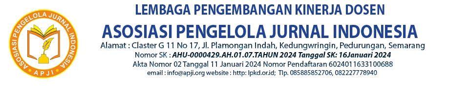 Sebagai lembaga publikasi jurnal yang tergabung dalam member Crossref melalui Sponsor Asosiasi Pengelola Jurnal Indonesia (APJI) DOI - APJI.ORG.
